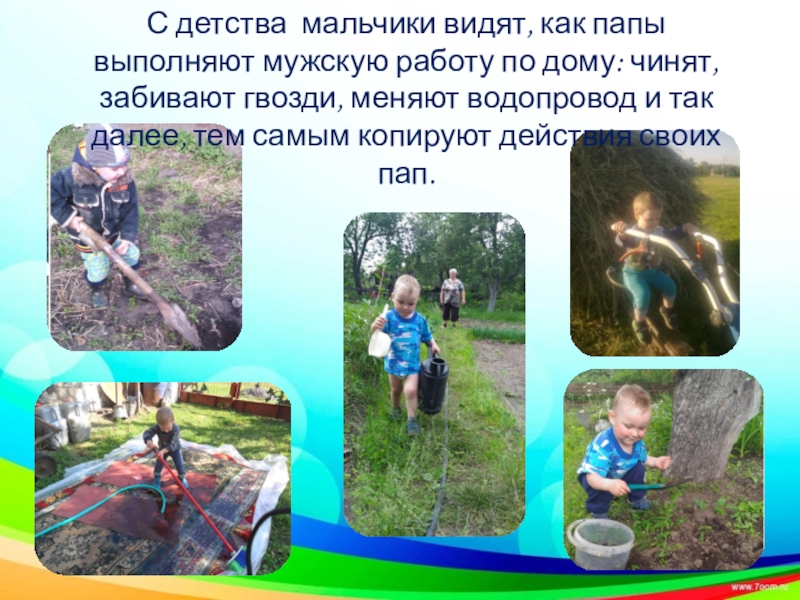 Слайд 8С детства мальчики видят, как папы выполняют мужскую работу по дому: