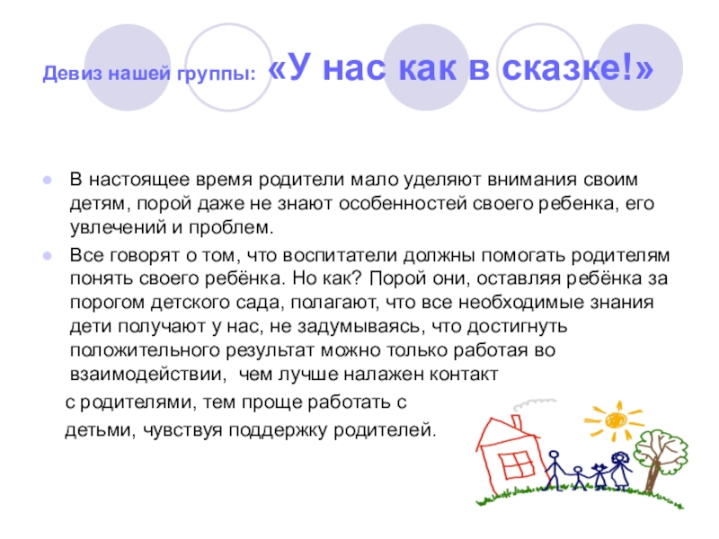 Мы всегда говорим родителям, какие они молодцы, и если бы они почитали ребенку сказку, поиграли в игру, да просто, не спеша поговорили с ним о том, что он делал в течение дня, то это помогло бы нам сделать жизнь детей ярче и радостнее и было бы полезно для ребенка.