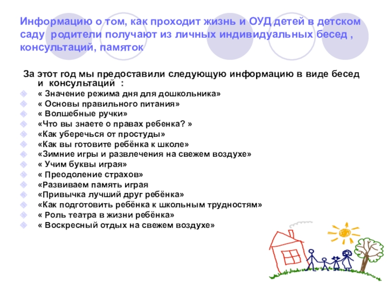 За этот год мы предоставили следующую информацию в виде бесед и консультаций :