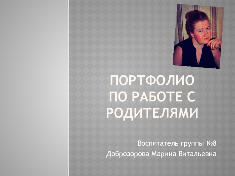 Портфолио по работе с родителямиВоспитатель группы №8Доброзорова Марина Витальевна