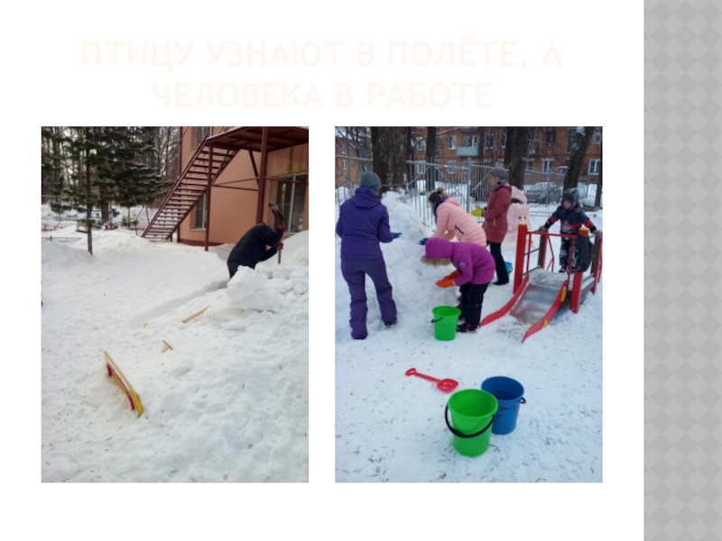 Слайд 8Птицу узнают в полёте, а человека в работе
