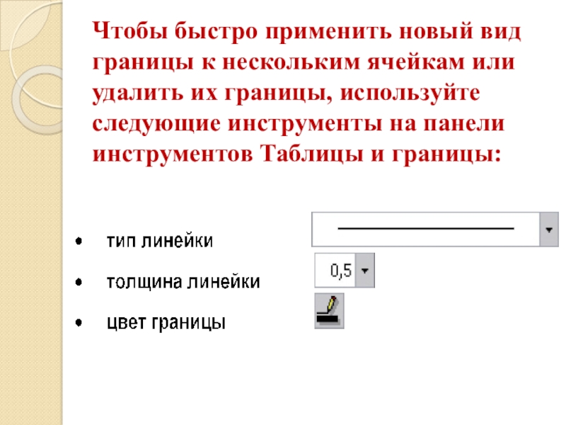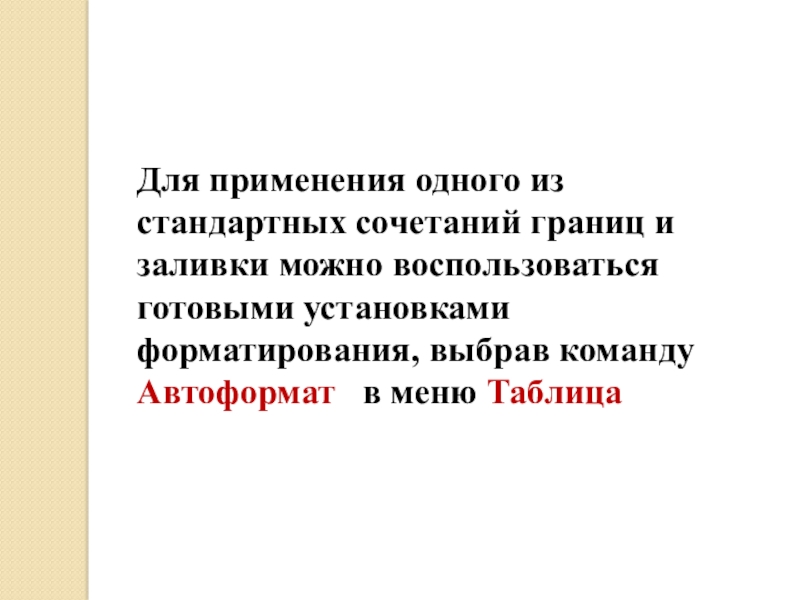 * Команда Таблица — Свойства таблицы — Таблица позволяет устанавливать границы и заливки в таблице.