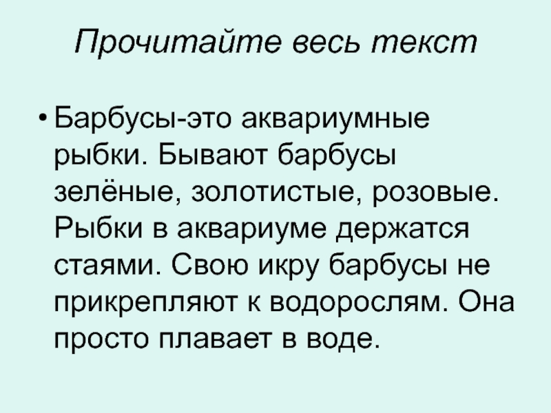Слайд 1Работа с текстом « Барбус» 1 класс