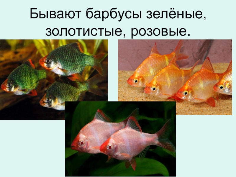 Слайд 3Бывают барбусы зелёные, золотистые, розовые.