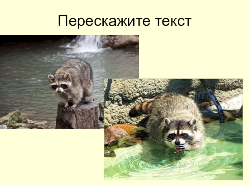 на охоту. Часто таскает кур. Енот любит ловить рыбу. Перед едой он моет добычу. За это его прозвали полоскуном.