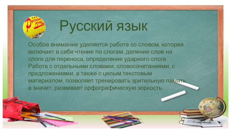 по слогам, деление слов на слоги для переноса, определение ударного слога. Работа с отдельными словами, словосочетаниями, с предложениями, а также с целым текстовым материалом, позволяет тренировать зрительную память, а значит, развивает орфографическую зоркость.