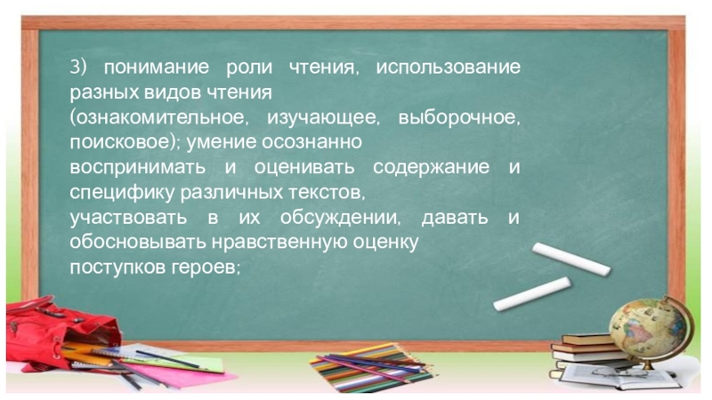 Слайд 63) понимание роли чтения, использование разных видов чтения