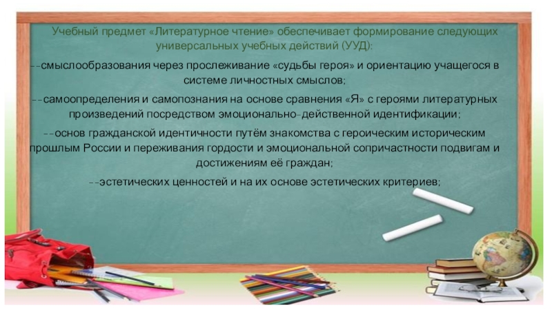 Слайд 10Учебный предмет «Литературное чтение» обеспечивает формирование следующих универсальных учебных действий (УУД):