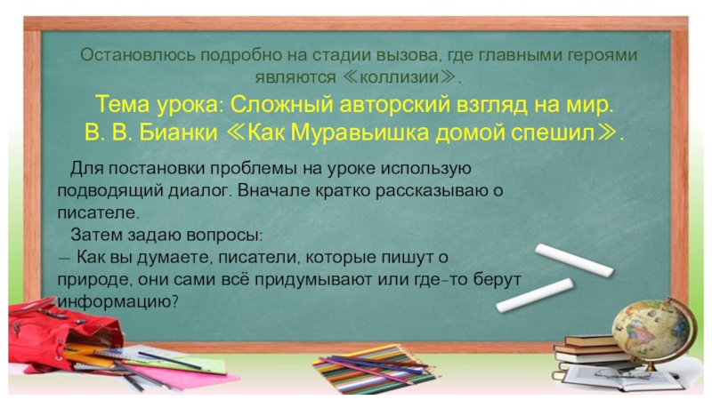 Постановка проблемы урока: ≪Если в текстах В. Бианки есть научная информация, то кто же В. Бианки —