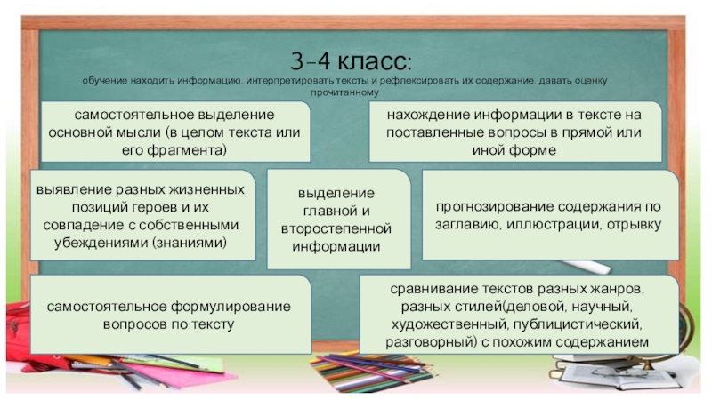 обучение находить информацию, интерпретировать тексты и рефлексировать их содержание, давать оценку прочитанному