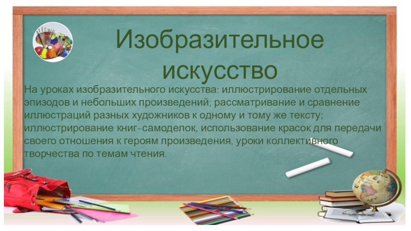 На уроках изобразительного искусства: иллюстрирование отдельных эпизодов и небольших произведений; рассматривание