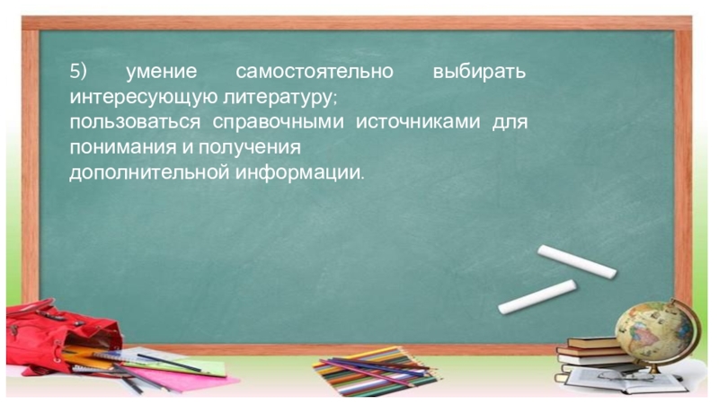Слайд 85) умение самостоятельно выбирать интересующую литературу;