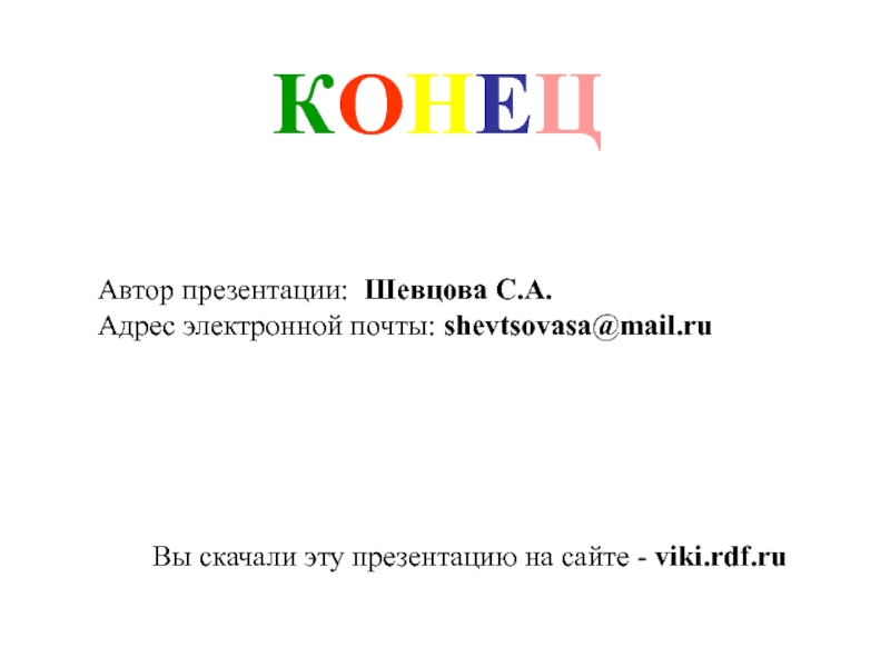 КОНЕЦАвтор презентации: Шевцова С.А.Адрес электронной почты: shevtsovasa@mail.ruВы скачали эту презентацию на сайте - viki.rdf.ru