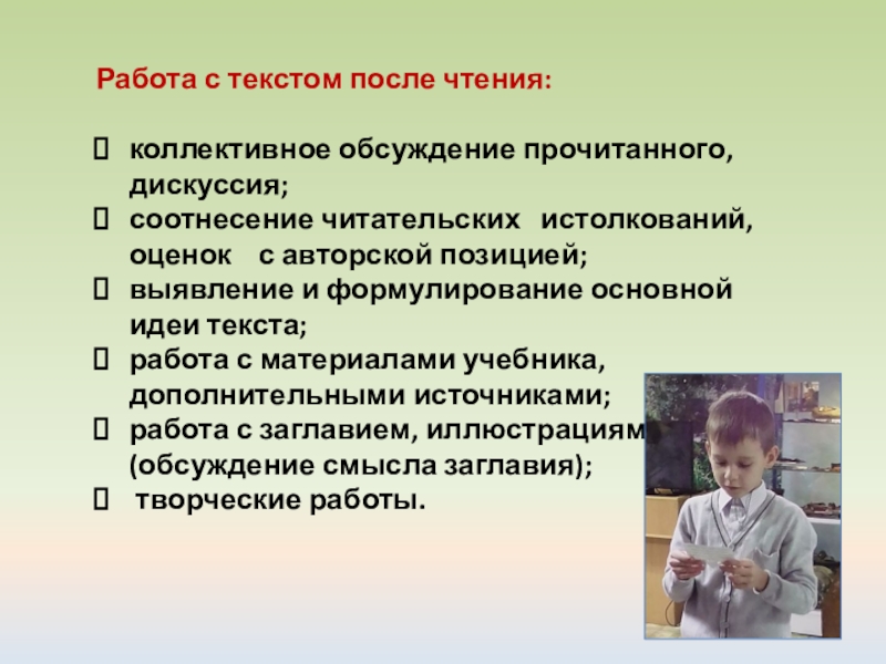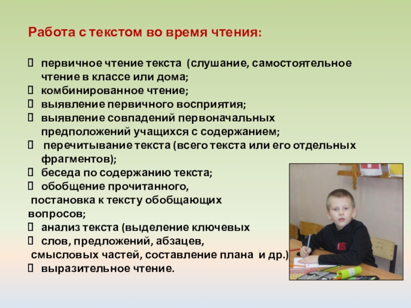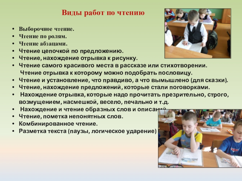 Виды работ по чтению