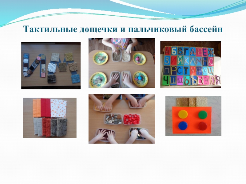 Слайд 6Тактильные дощечки и пальчиковый бассейн