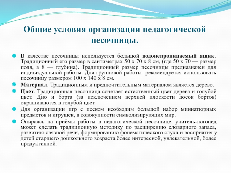 Слайд 14Общие условия организации педагогической песочницы.