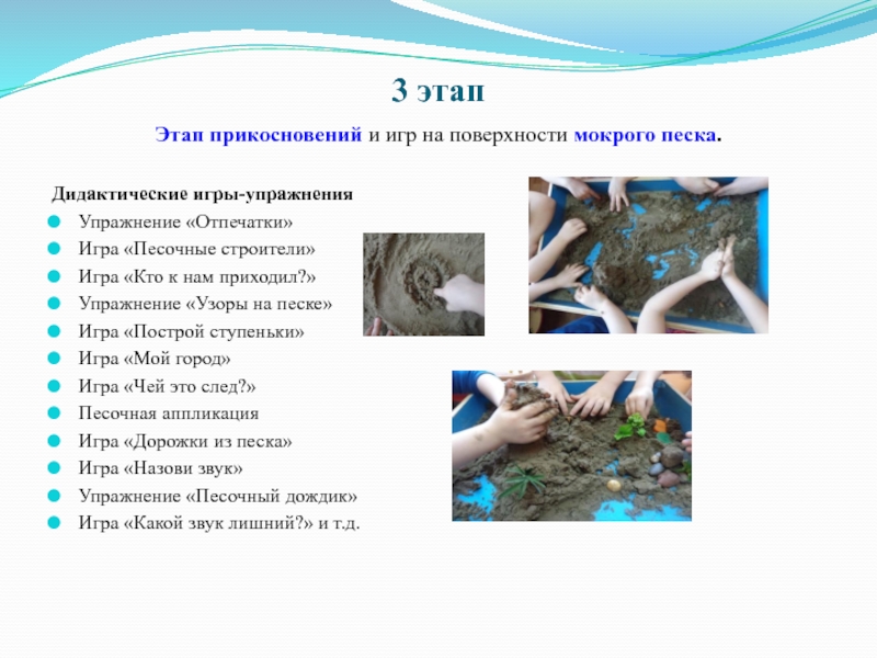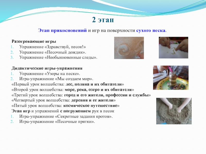 Этап игр и упражнений с погружением рук в песок