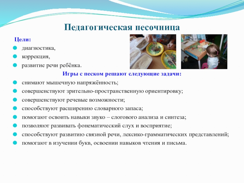 Игры с песком решают следующие задачи: