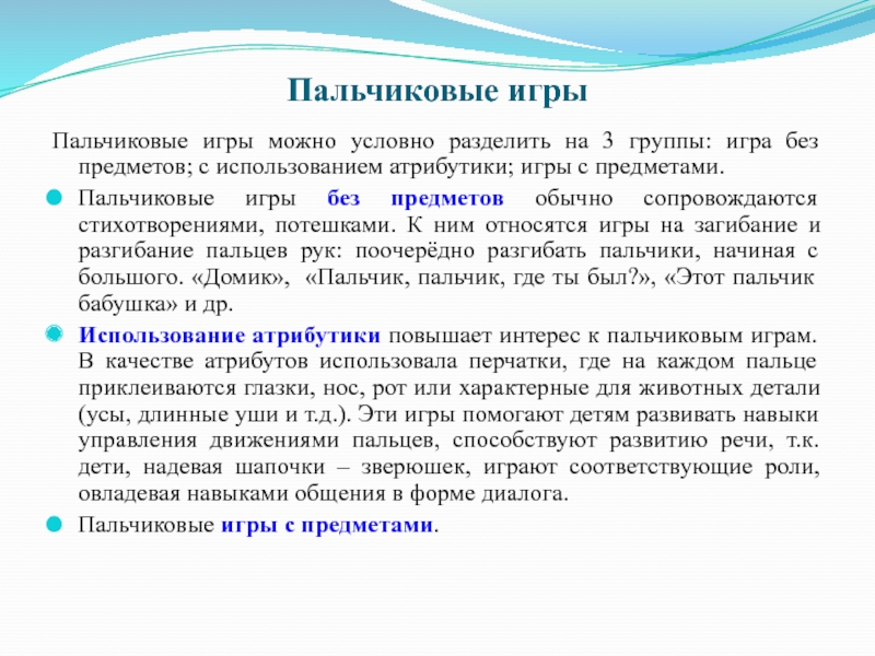 Слайд 7Пальчиковые игры