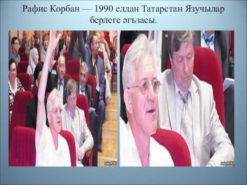 Слайд 24Рафис Корбан — 1990 елдан Татарстан Язучылар берлеге әгъзасы.