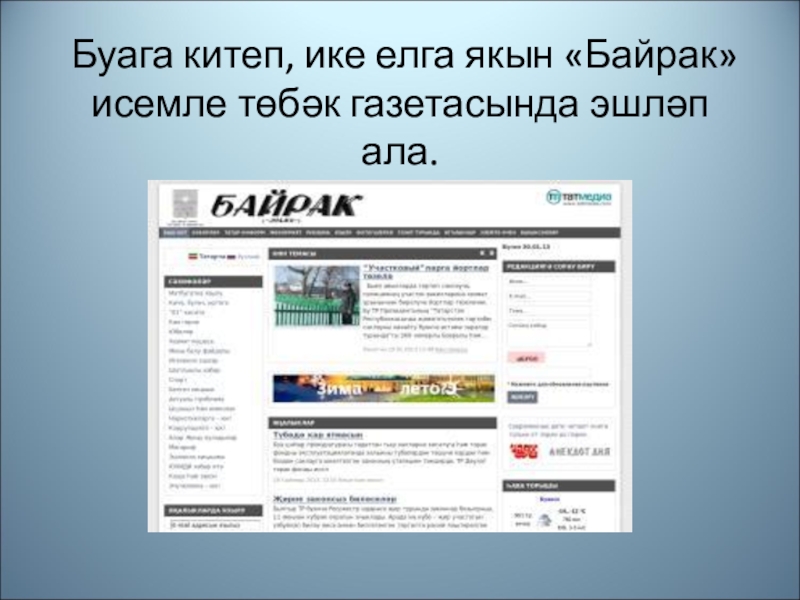 Слайд 8 Буага китеп, ике елга якын «Байрак» исемле төбәк газетасында эшләп