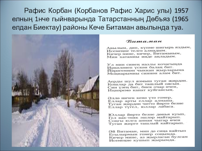 Слайд 3 Рафис Корбан (Корбанов Рафис Харис улы) 1957 елның 1нче гыйнварында