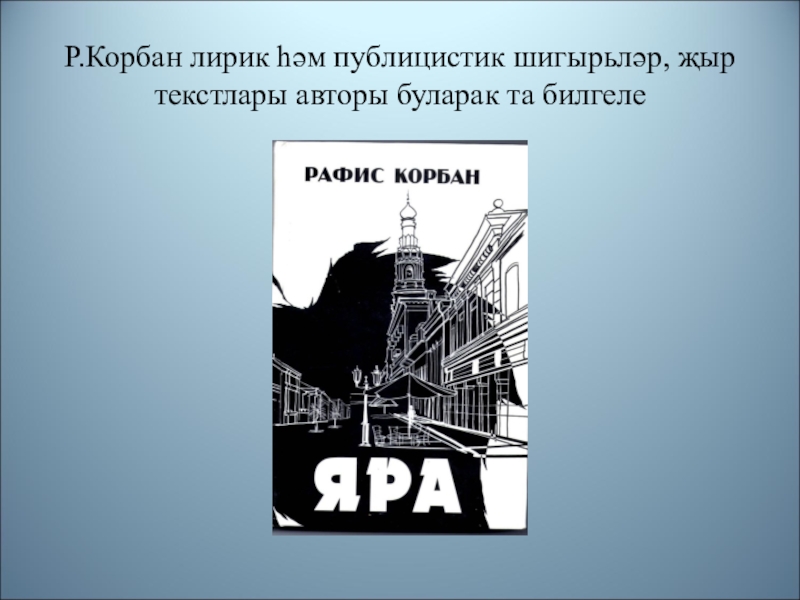 Слайд 23Р.Корбан лирик һәм публицистик шигырьләр, җыр текстлары авторы буларак та билгеле