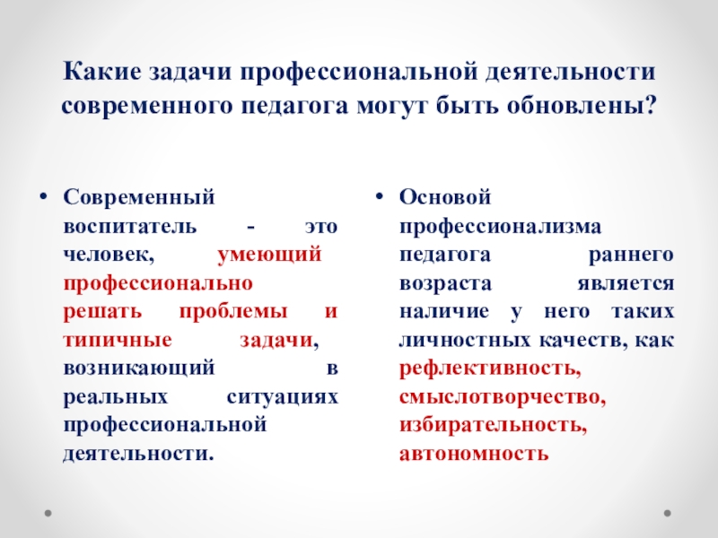 Слайд 17Какие задачи профессиональной деятельности современного педагога могут быть обновлены?