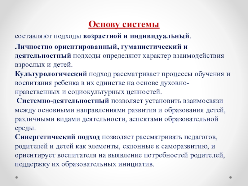 подходы определяют характер взаимодействия взрослых и детей.