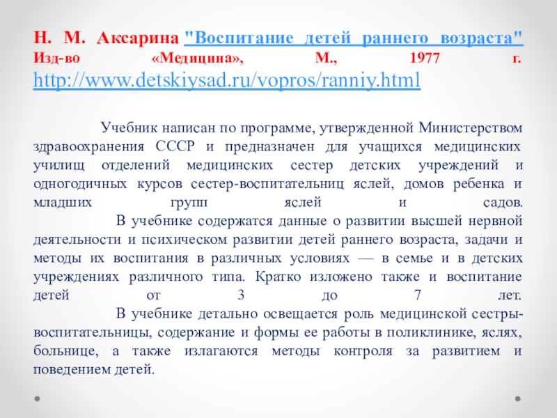 Н. М. Аксарина "Воспитание детей раннего возраста"