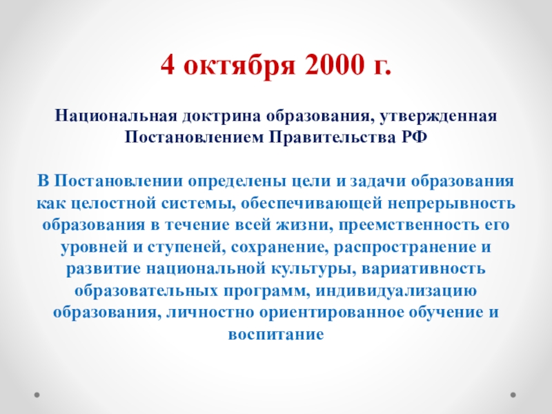 Национальная доктрина образования, утвержденная Постановлением Правительства РФ