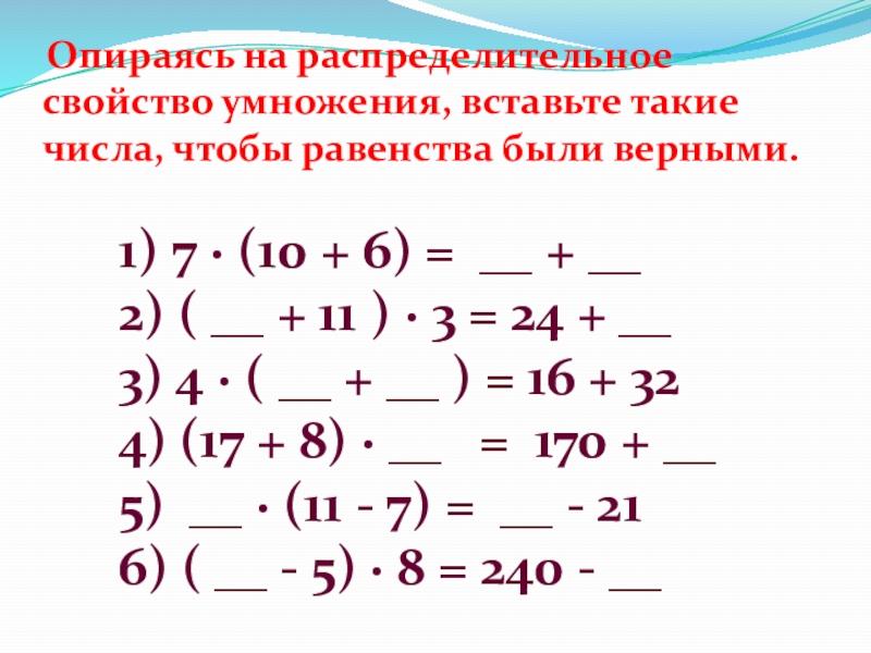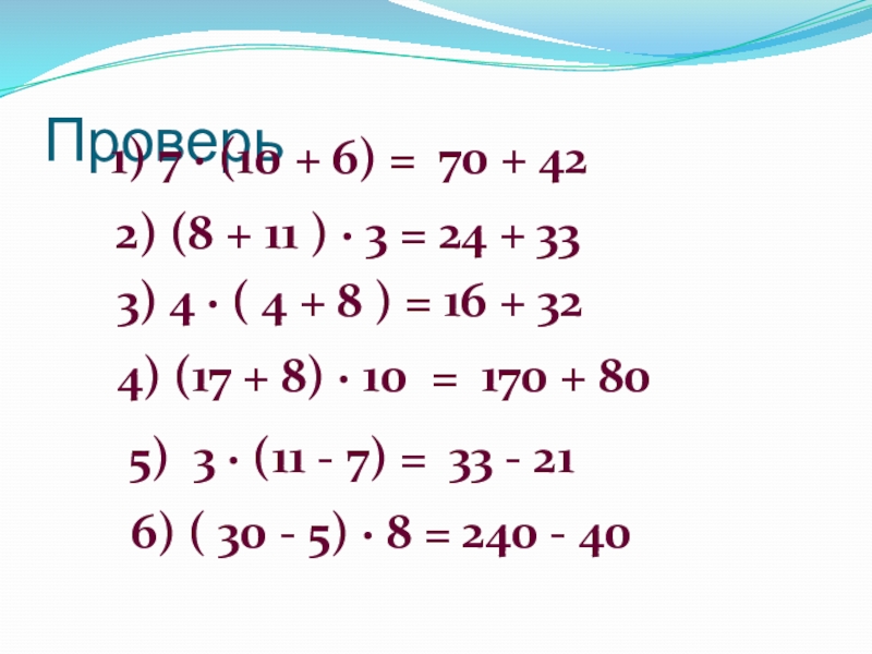 6) ( 30 - 5) ∙ 8 = 240 - 40