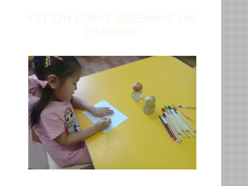 Слайд 8Кэтээн коруу дневниигын толоруу