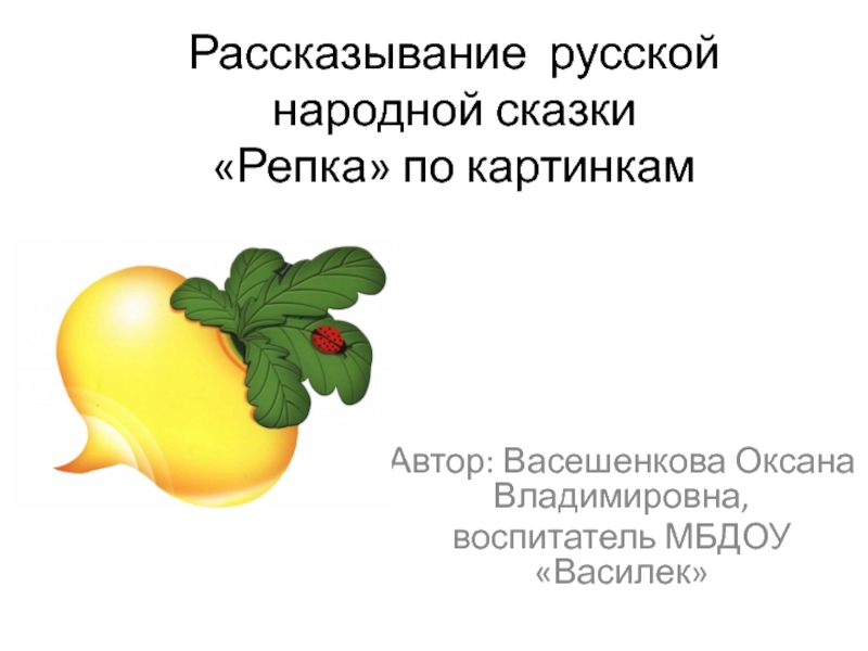 Рассказывание русской народной сказки «Репка» по картинкамАвтор: Васешенкова Оксана Владимировна,воспитатель МБДОУ «Василек»