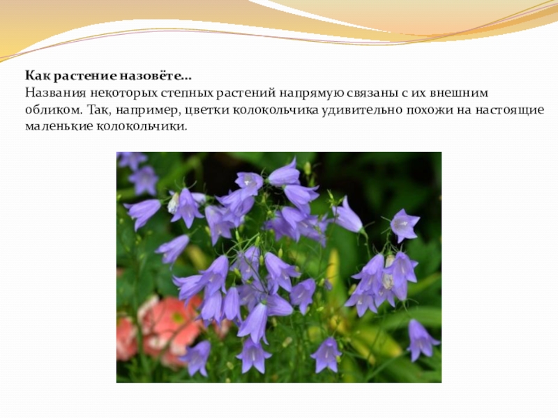 Как растение назовёте…Названия некоторых степных растений напрямую связаны с их внешним обликом. Так, например, цветки колокольчика удивительно похожи на