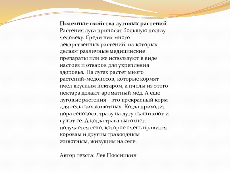 Полезные свойства луговых растенийРастения луга приносят большую пользу человеку. Среди них много лекарственных растений, из которых делают