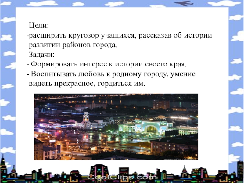 расширить кругозор учащихся, рассказав об истории развитии районов города.