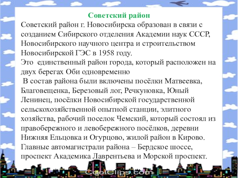 Советский район г. Новосибирска образован в связи с созданием Сибирского
