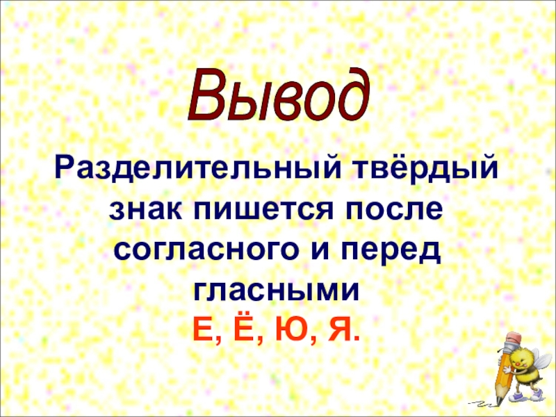 Вывод Разделительный твёрдый знак пишется после согласного и перед гласными