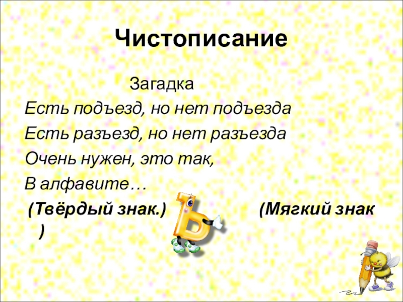 Чистописание             ЗагадкаЕсть подъезд, но нет