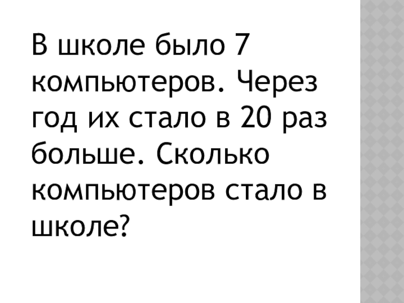 Слайд 45В школе было 7 компьютеров. Через год их стало в 20