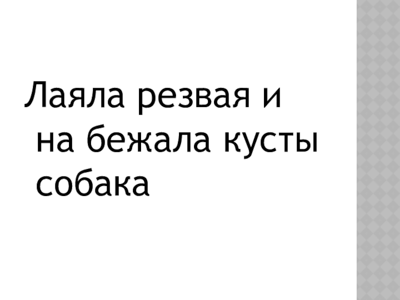 Слайд 29Лаяла резвая и на бежала кусты собака
