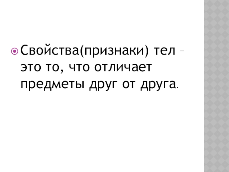 Слайд 22Свойства(признаки) тел – это то, что отличает предметы друг от друга.