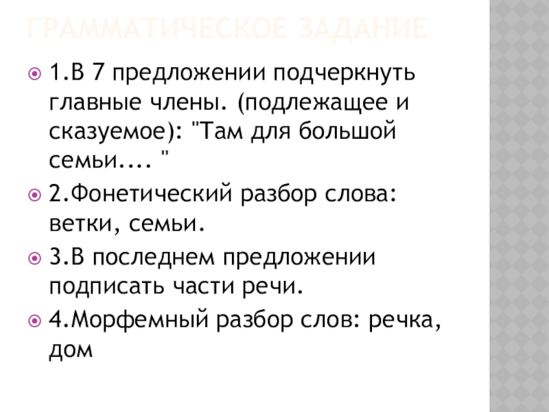 1.В 7 предложении подчеркнуть главные члены. (подлежащее и сказуемое): "Там