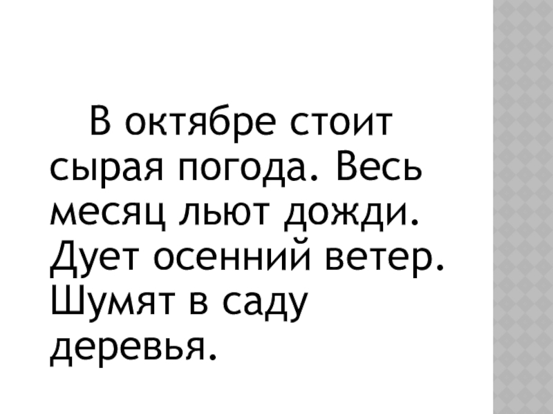 Слайд 12 В октябре стоит сырая погода. Весь месяц льют