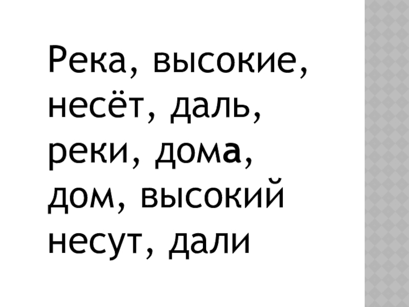 Слайд 48Река, высокие, несёт, даль, реки, дома, дом, высокий несут, дали