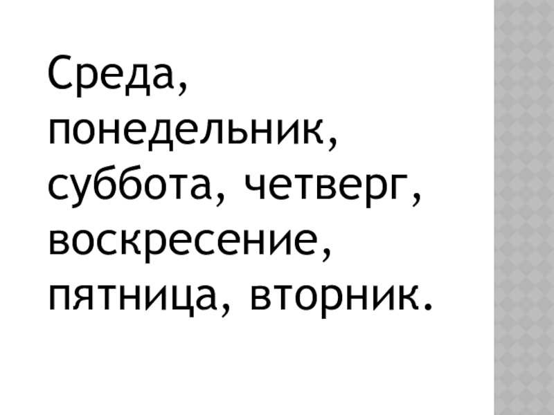 Слайд 43Среда, понедельник, суббота, четверг, воскресение, пятница, вторник.