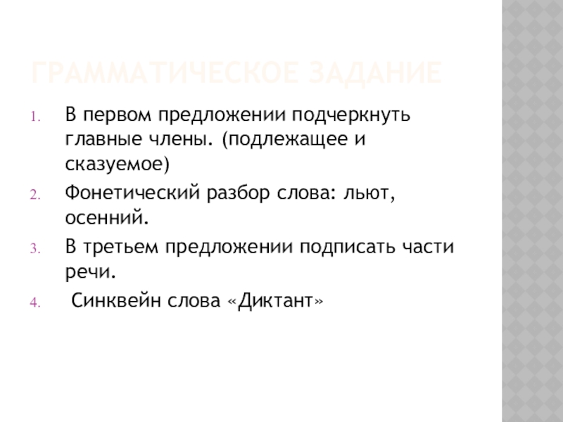 В первом предложении подчеркнуть главные члены. (подлежащее и сказуемое)