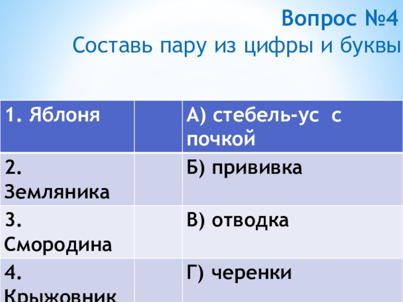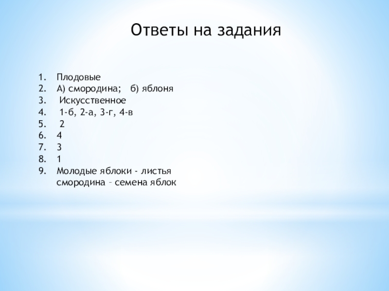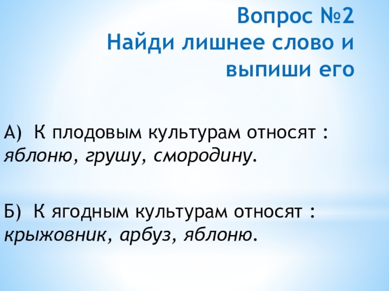Б) К ягодным культурам относят : крыжовник, арбуз, яблоню.