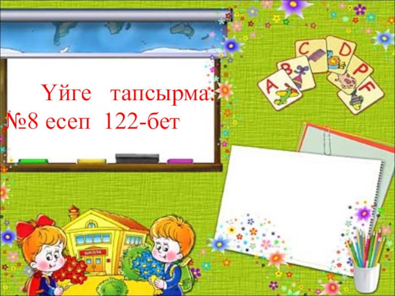 Слайд 12 Үйге тапсырма: №8 есеп 122-бет